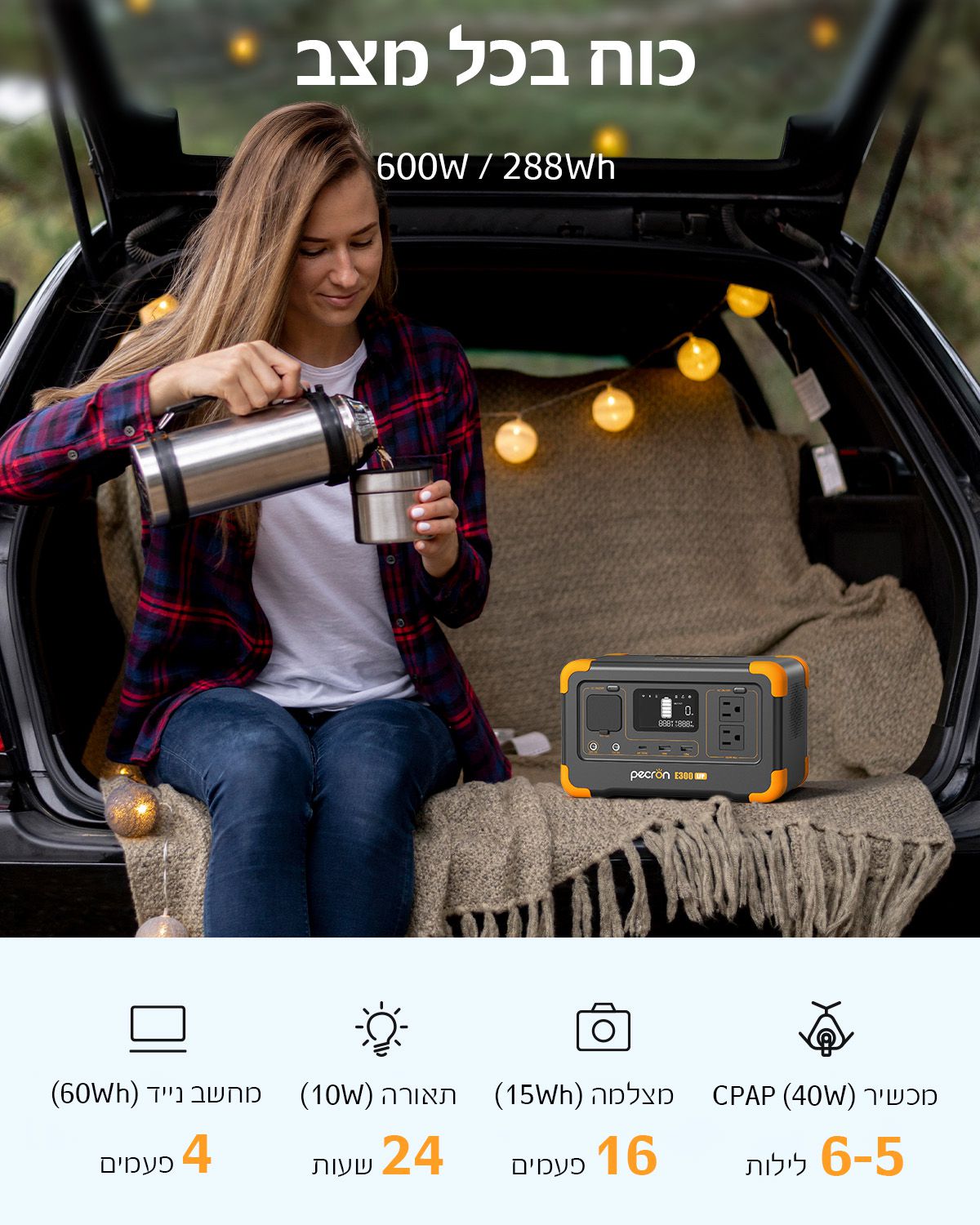 שם המוצר: תחנת כח ניידת PECRON E300LFP