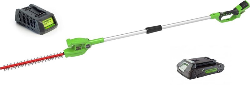 מגזמת גובה 24V (דגם משופר 2.2מ')+ סוללה 2.0Ah + מטען מהיר greenworks