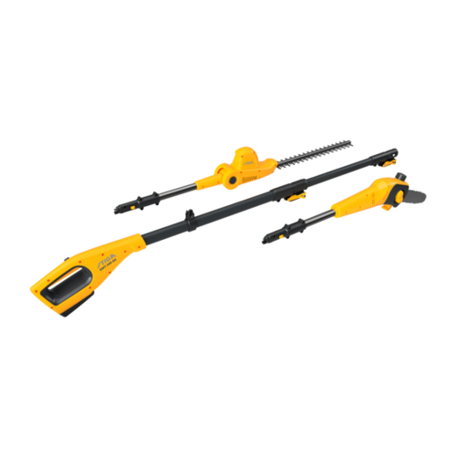 סט - גוף מנוע +אביזר מסור +אביזר מגזמת +סוללה 4 AH+מטען