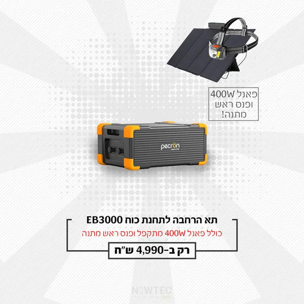 EB3000 נועדה להרחיב את ה־E2000LFP לעד 8064Wh – ומביאה עמה קיבולת עצומה של 3072Wh בסוללת LiFePO4 מתקדמת. פתרון מושלם לגיבוי ביתי, קמפינג, עבודה ניידת וכל תרחיש שבו אתה צריך חשמל לזמן ארוך יותר, מבלי להתפשר.