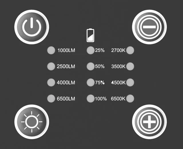 נמוך: 1,000 לומן / בינוני: 2,500 לומן / גבוה: 4,000 לומן / טורבו: 6,500 לומן